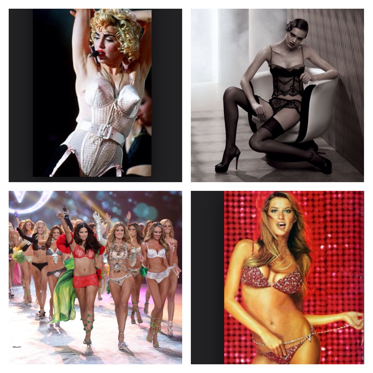 A grife americana Victoria’s Secret ,é um exemplo de como esta indústria tem fôlego de investir cada vez mais em um setor que virou objeto de desejo da maioria das mulheres. Seus desfiles absolutamente espetaculares são transmitidos pela TV, cantores famosos como Katy Perry, Akon, Kanye West, Maroon Five e Nick Minaj já se apresentaram nos seus shows, e as maiores top models do mundo as chamadas Angels fazem parte do seu casting.